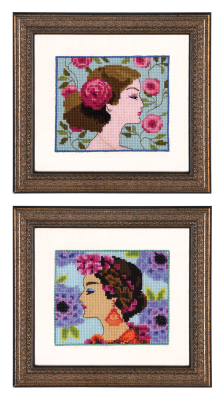 Cross stitch chart by Nora Corbett Designs from her Bella Portraits series. Suggested fabric: 65101 32ct Antique White Linen or Alt Fabric 355101 16ct Antique White Aida. Also uses DMC floss and Mill Hill Beads 00123 (1), 00165 (1), 00423 (1), 03004(1). Approximate Size: 4.5"w x 3.9"h