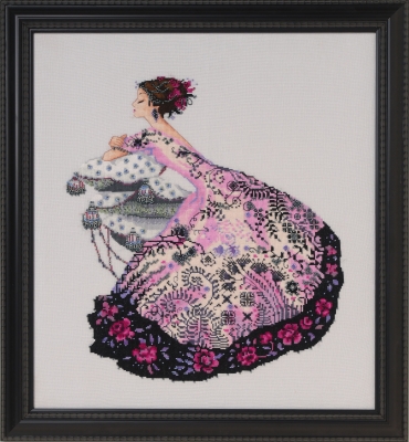 Cross stitch chart by Mirabilia Designs (Nora Corbett). Model was stitched on 32ct Graceful Grey Linen over two threads using DMC floss, Mill Hill Beads (00168, 02022, 02077, 4 of 03022, 2 of 10003, 10008, 2 of 10092), Caron Waterlilies (072, 108, 112, 152, 209). Alt Fabrics: 16ct Graceful Grey Aida. Approx size: 12.6 x 14.3 inches.